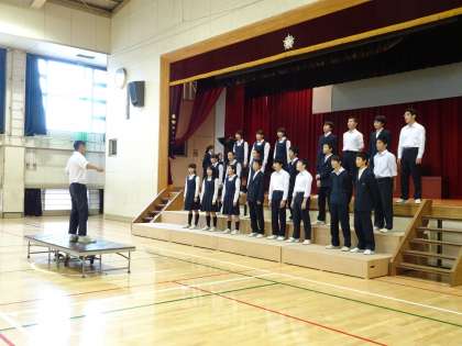 合唱コンクール縦割り練習B組の様子です。B組は1年生から順に自由曲を歌いました。合唱コンクールまであと1週間です。先輩の合唱から学んだことを自分たちの合唱に活かしていきましょう。(遠藤)