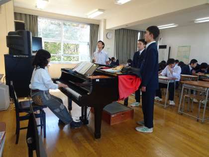 3年生の音楽の授業の様子です。課題曲「あなたへ」のテストをしていました。(遠藤)