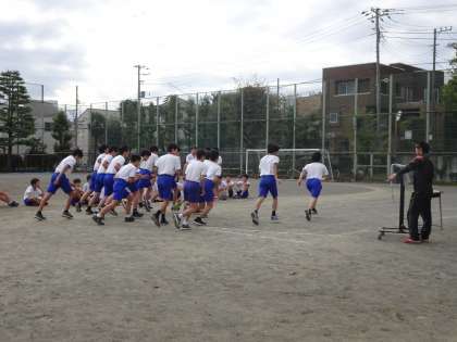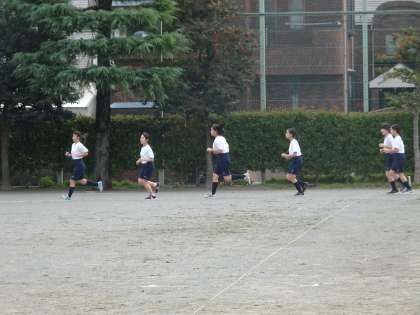 3年生の体育の授業の様子です。男女とも1500m走のタイムを計測していました。(遠藤)