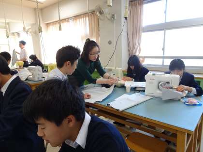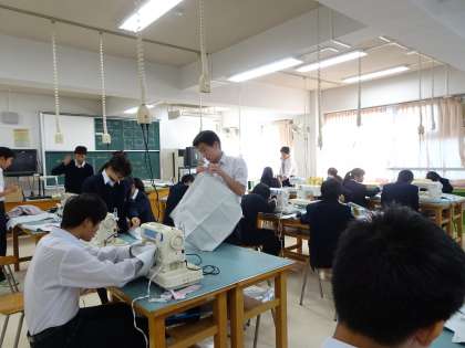 3年生の家庭科の授業の様子です。防災バッグを作っています。(遠藤)