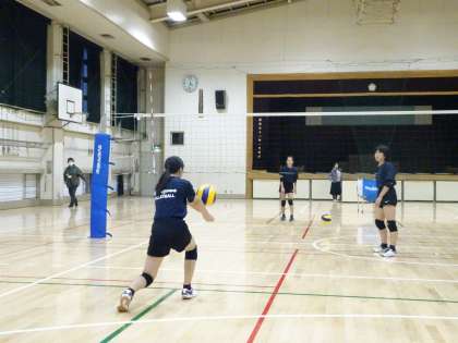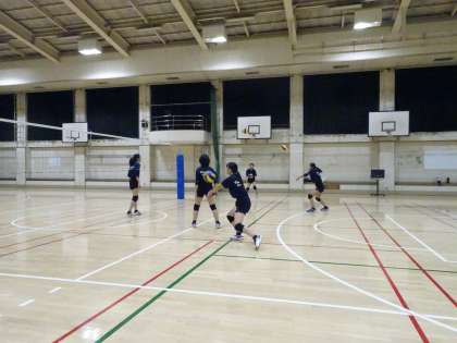 女子バレーボール部が体育館で活動しています。サーブレシーブの練習です。(遠藤)