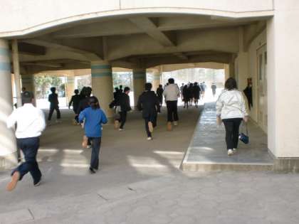 毎月行っている避難訓練。今日は実施時刻の予告なしの火災想定で実施しました。避難開始放送から校庭に避難し、点呼終了まで3分55秒でした。前回より10秒短縮しました。晴天が続き乾燥しています。副校長の講評で、家庭でも火災予防の心構えと点検をしましょうとの話がありました。阪神淡路大震災から16年、地震への備えも欠かせません。3月5日(土)には、全校生徒参加で地域合同防災訓練を実施予定です。