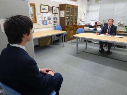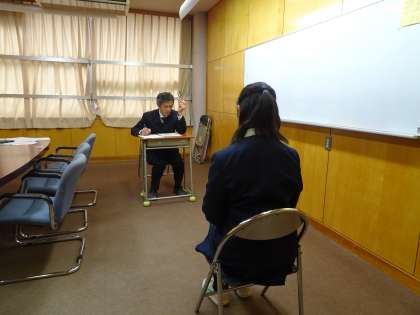 3年生の校長面接、副校長面接が始まっています。自分が受験をする高校を想定しての面接です。入室から退室までの流れや質問の答え方をもう一度確認しておきましょう。(遠藤)