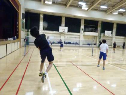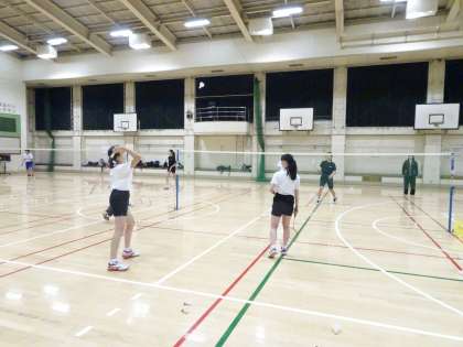 午前中の体育館ではバドミントン部が活動しています。サーブをきちんと返す練習をしていました。(遠藤)