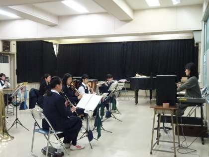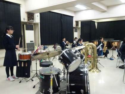 第二音楽室では吹奏楽部が活動しています。今日はみんなで音を合わせているようです。(遠藤)