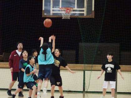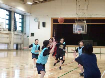 午後の体育館では女子バスケットボール部が活動中です。5対5のゲーム形式の練習をしていました。(遠藤)