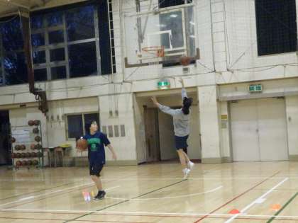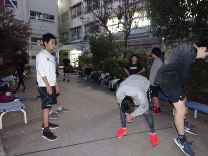 放課後、バスケットボール部が活動しています。男子は外練です。サーキットトレーニングをしています。女子は体育館でアップシュートの練習です。(遠藤)