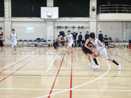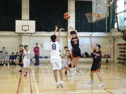 男子バスケットボール部が狛江三中と練習試合を行っています。ディフェンスとオフェンスの切り換えを早くし、速攻を確実に決められるようにしましょう。(遠藤)