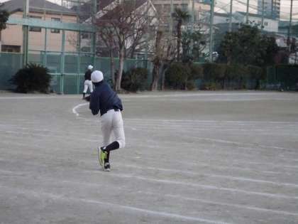 野球部が校庭で活動しています。フィールディング練習をしています。ライトからのバックホームです。(遠藤)