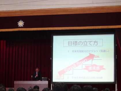 そこで、今年も目標の立て方についてお話します。2・3年生はもう分かっている内容かもしれませんが、気持ちを新たにして聞いてください。これまでとは違う受け止め方になるかもしれません。