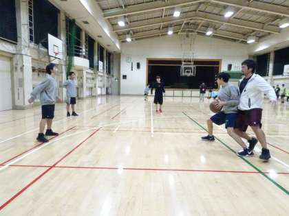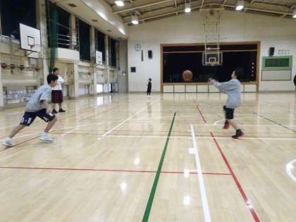 午前中の体育館では男子バスケットボール部が活動しています。動きのスピードに変化をつけてマークを外す練習やポストプレーの練習をしています。(遠藤)