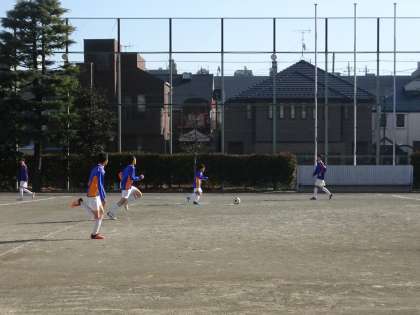 校庭ではサッカー部が活動しています。ワンタッチでパスをつないでシュートまでもっていく練習をしていました。(遠藤)