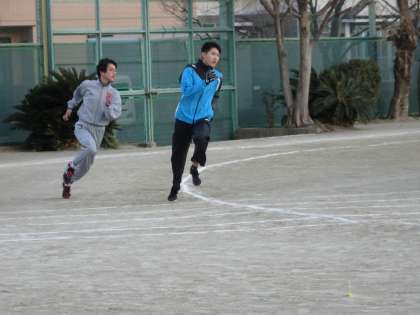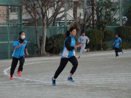校庭では陸上競技部が活動しています。100メートル流しをしていました。(遠藤)