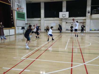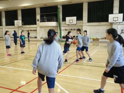 午前中の体育館ではバスケットボール部が活動しています。男子は3対2の練習です。女子はUCLAカットの練習です。男子は明日、冬季大会の1回戦です。試合に向けてしっかり準備しましょう。(遠藤)