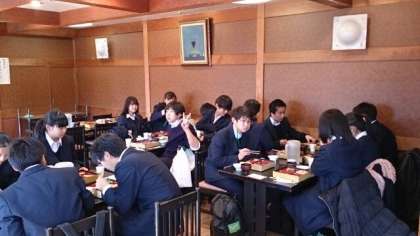 浅草に到着した班から、浅草寺近くにある雷5656会館で昼食です。江戸情緒を味わいましょう。(桝田)