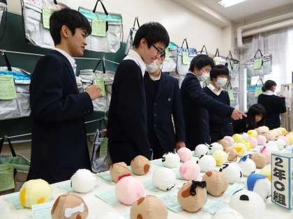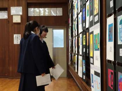 展示発表の見学をしています。「これすごい!」、「これおもしろい!」等、感心しながら見学をしていました。(遠藤)