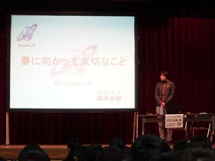 本日のオリンピック・パラリンピック講演会では、バスケットボール選手の森本由樹さんに「夢に向かって大切なこと」をテーマに講演をしていただきました。(多久)