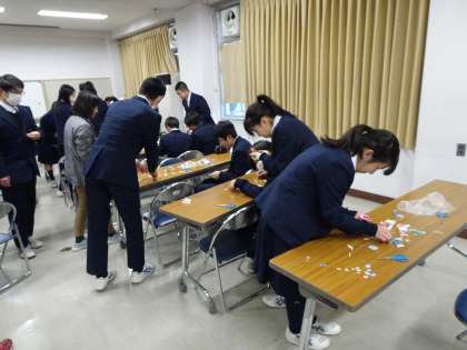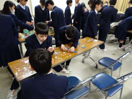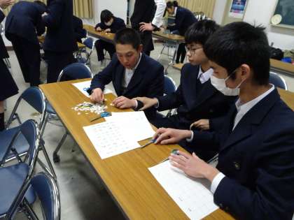 放課後、生徒会本部役員と1,2年生の委員会の生徒たちがベルマークの集計を行っています。(遠藤)