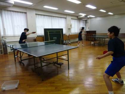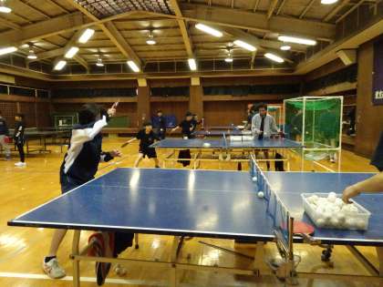 卓球部が格技室と多目的室で活動しています。それぞれの課題に取り組んでいるようです。(遠藤)