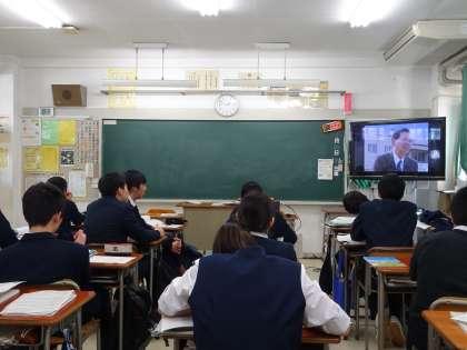 3年生の道徳です。卒業式にむけて「旅立ちの日にの奇蹟」を見て、曲に込められた願いや思いを考えたり、最後の大切な行事「卒業式」にむけてどんな思いで取り組みたいかを考えたりしました。(遠藤)