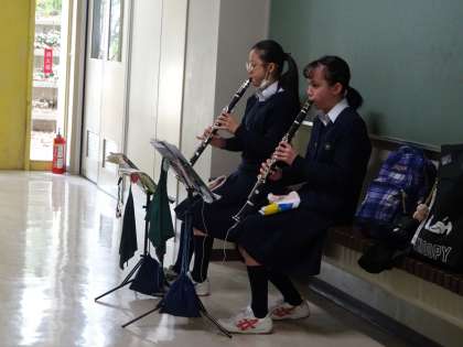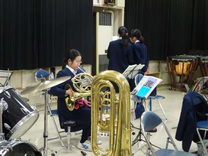 吹奏楽部が活動しています。今日はパートごとに分かれて練習しています。(遠藤)