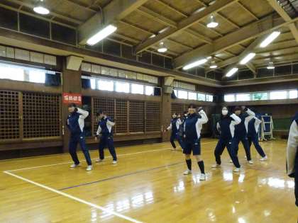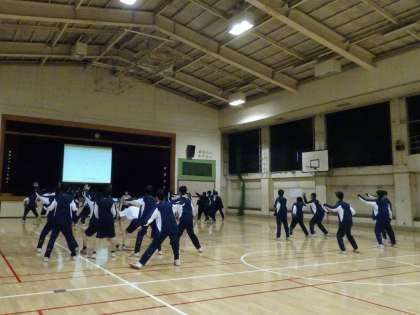 1年生の体育の授業です。男子は体育館でソーラン節、女子は格技室で創作ダンスをやっていました。(遠藤)
