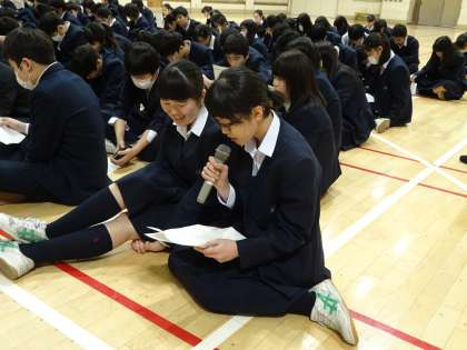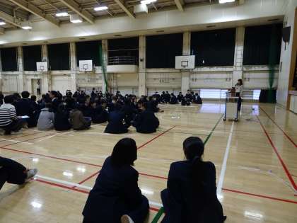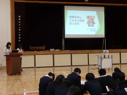 3年生の国際理解授業のようすです。「世界がもし100人の村だったら」を学年全体で実施しています。(遠藤)