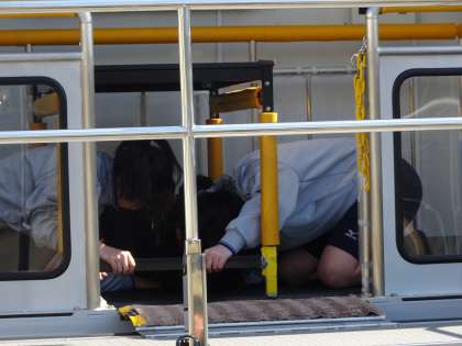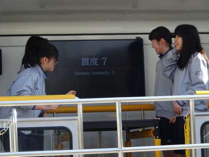 地震体験車の様子です。震度7の揺れを体験しています。(遠藤)