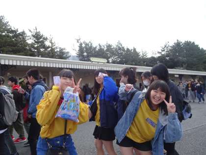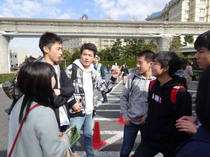 東京ディズニーランドに到着しました。入場チェックを受けています。(遠藤)