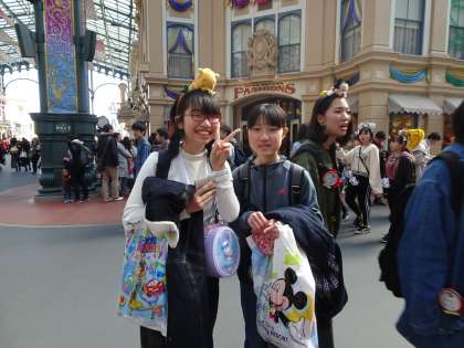 帰りの時間が近くなってきました。ワールドバザールでお土産を買うようです。(遠藤)