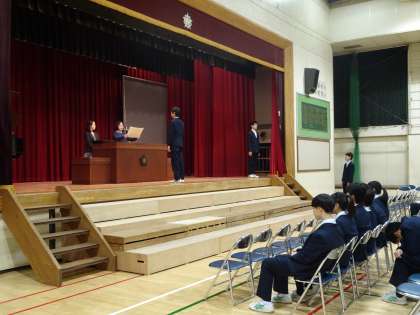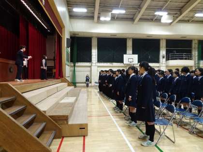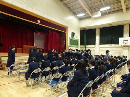 3年生が卒業式の練習をしています。入退場や呼名、合唱の練習をしています。(遠藤)