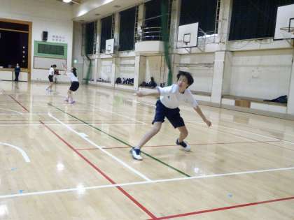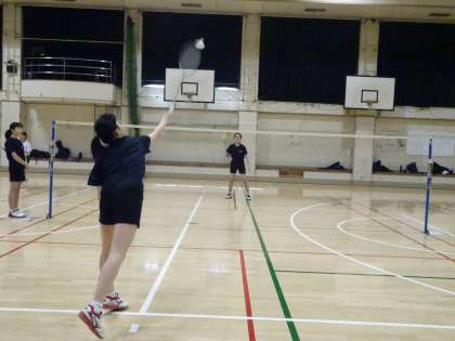 体育館ではバドミントン部が活動しています。試合形式の練習をしていました。(遠藤)