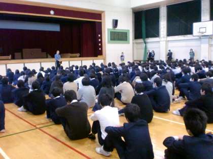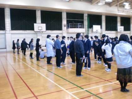 毎月行っている避難訓練ですが、今日は昼休みに予告なしで行いました。生徒が思い思いに過ごしている昼休みに大きな地震がきて、揺れがおさまるまで窓や落下物の危険があるところから離れ、放送の指示に従って体育館に集合するというものでした。避難指示から3分55秒で集合、人員確認が終わりました。時間的にはまずまずでしたが、外で遊んでいた生徒が、放送を聞かなかったり、教室にいる生徒が机の下に入らない者がいたりと課題も残りました。今年の避難訓練の総まとめとして、3月5日(土)には町会はじめ、学校協議会の皆さんを中心に大規模に「地域合同防災訓練」を実施します。ご協力をお願いいたします。