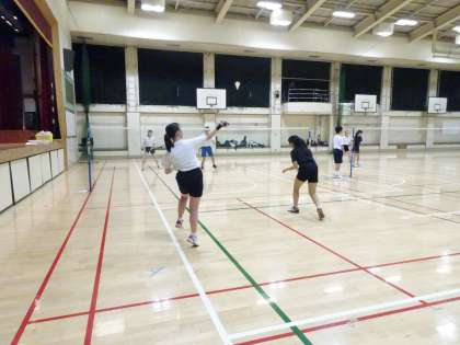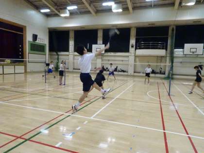 午後の体育館ではバドミントン部が活動しています。試合形式でダブルスの練習をしていました。(遠藤)