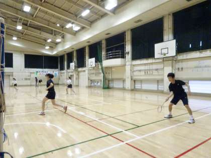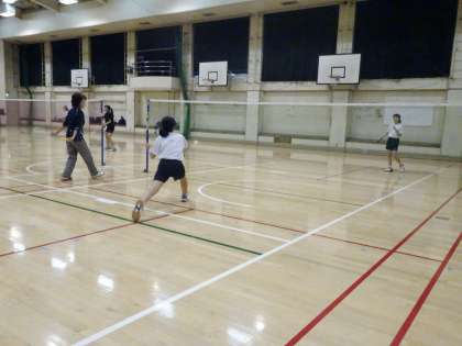 15時からバドミントン部が体育館で活動しています。基礎打ちの練習をしていました。(遠藤)