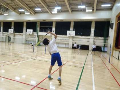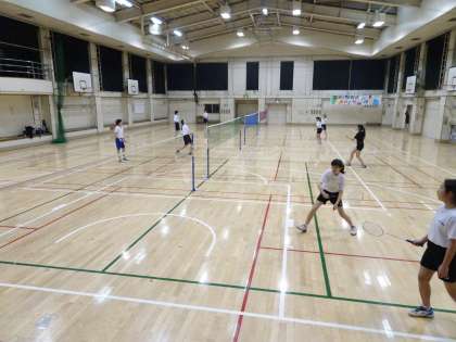 15時からバドミントン部が体育館で活動しています。スマッシュをドライブで返す練習をしていました。(遠藤)