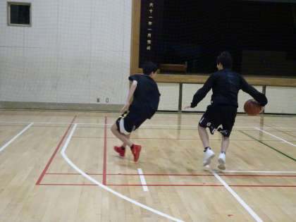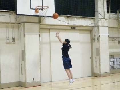 体育館ではバスケットボール部が活動中です。男子は1対1、女子はシュート練習をしていました。(遠藤)