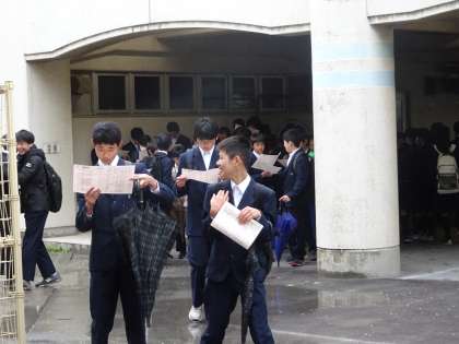 保健室前やプール下で新3年生、新2年生の新しいクラスが発表されています。1年間、ともに過ごす仲間たちです。1年後、このクラスでよかったと思えるクラスにしていきましょう。(遠藤)