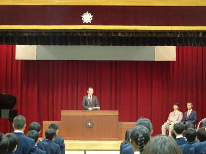 始業式の前に着任式を行いました。今年度、着任された教職員の紹介がありました。(遠藤)