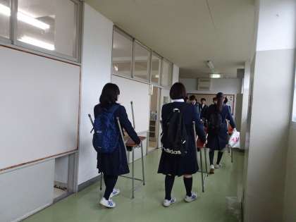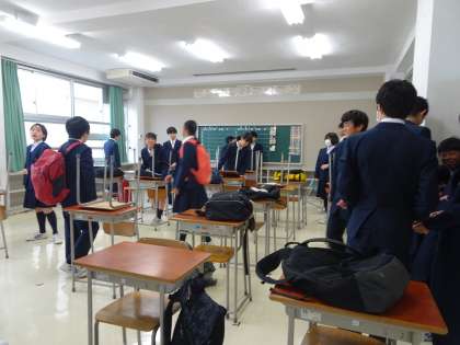 始業式のあとは、新しいクラスの教室に自分の机といすを移動させ、最初の学活です。(遠藤)