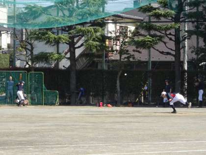 校庭では野球部が活動中です。シートバッティングをしていました。明日は春季大会のようです。がんばってください。(遠藤)