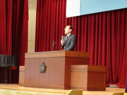それでは、本題に入ります。本日の全校朝礼は全学年そろった最初の朝礼です。そこで、学期の始まりにあたってみなさんに今学期の重点テーマとなることについてお話しします。
