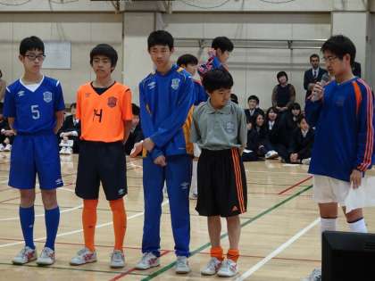 手話部は手話で同時通訳をしながら部活の説明をしていました。美術部は自分たちの作品を紹介しています。サッカー部は練習着やユニホームの紹介をしています。(遠藤)