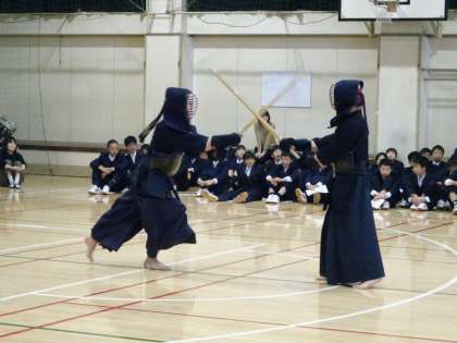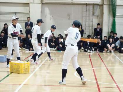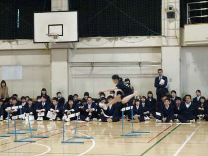 陸上部はハードル走を実演しています。剣道部は実際に防具をつけて打ち合っていました。野球部はキャッチボールや羽打ちを披露していました。3分間の発表の中にそれぞれの部活動の魅力がたくさん詰まっていました。1年生は入りたい部活が決まったでしょうか?(遠藤)
