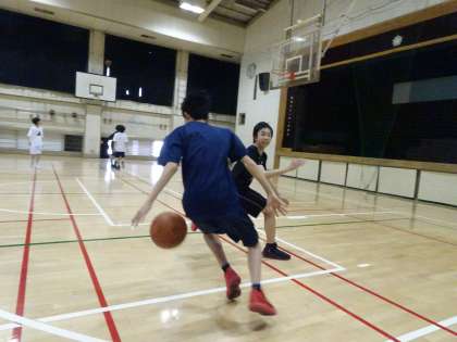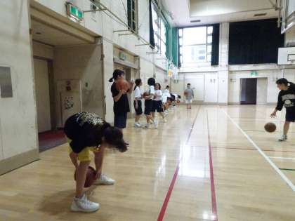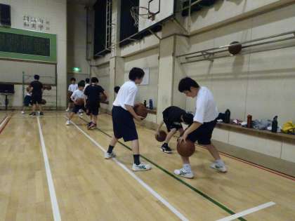 体育館ではバスケットボール部が活動しています。週末の春季大会に向けて集中して練習をしています。男女とも仮入部の1年生がコートの脇でハンドリングやドリブルの練習をしていました。このまま全員入部してくれるといいですね。(遠藤)
