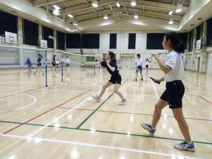 午後の体育館ではバドミントン部が活動しています。明日の春季大会に向けて気合の入った練習をしています。明日はがんばってください。(遠藤)