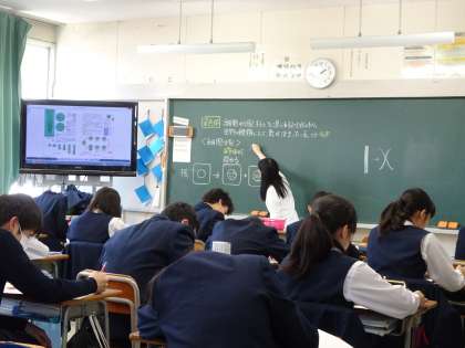 3年生の理科の授業の様子です。染色体や細胞分裂について学習していました。(遠藤)