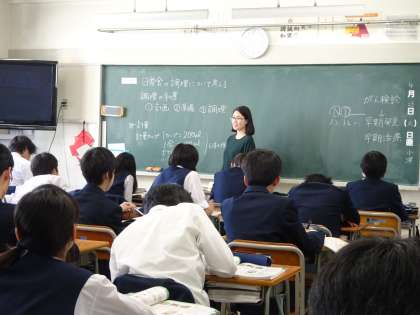 2年生の家庭科の授業です。調理の手順について学習しています。(遠藤)