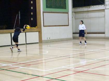 女子バレーボール部が15時から体育館で活動しています。2,3年生はスリーメンをやっています。1年生はボールを強く打つ練習をしていました。(遠藤)
