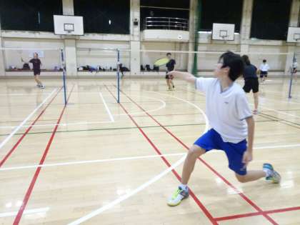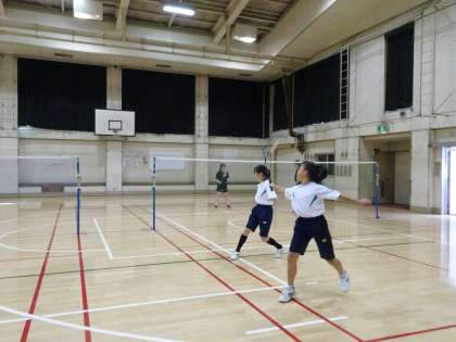 午後の体育館ではバドミントン部が活動しています。2,3年生は次の試合に向けてがんばっています。1年生は基本となる素振りをしていました。(遠藤)